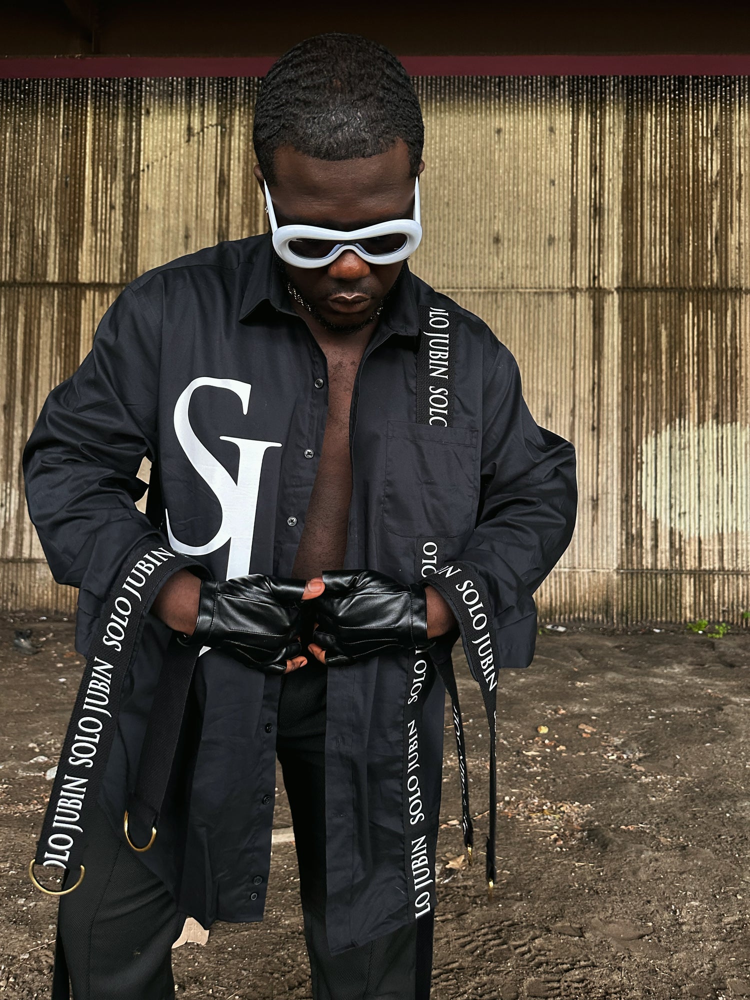 The Solo Jubin oversized unisex button up shirt, comes in black with a bold SJ logo! In addition to an SJ signature statement belt!